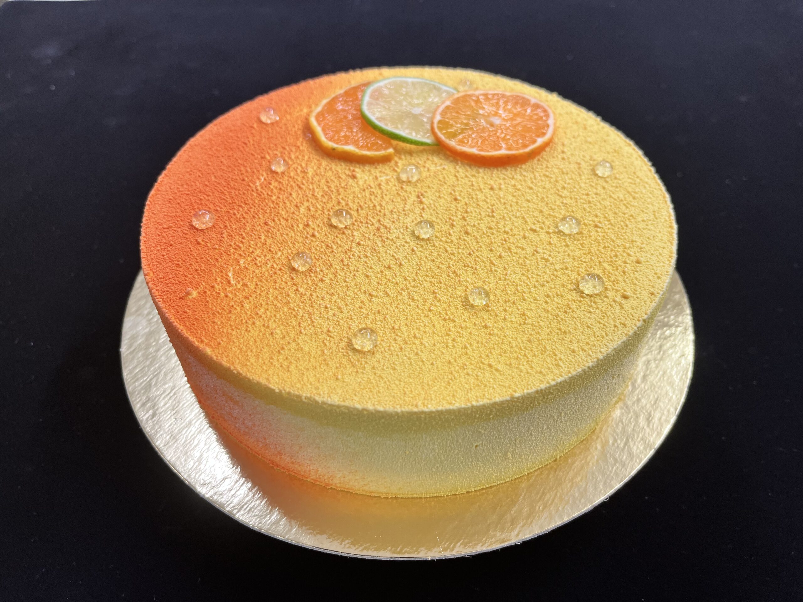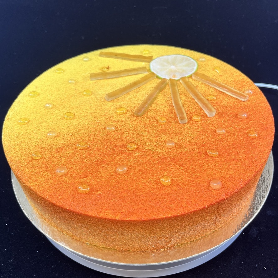 Pâte sablée, écorces de citron confites, crémeux citrons, biscuit moelleux, gelée de safran, mousses légères aux agrumes de saison